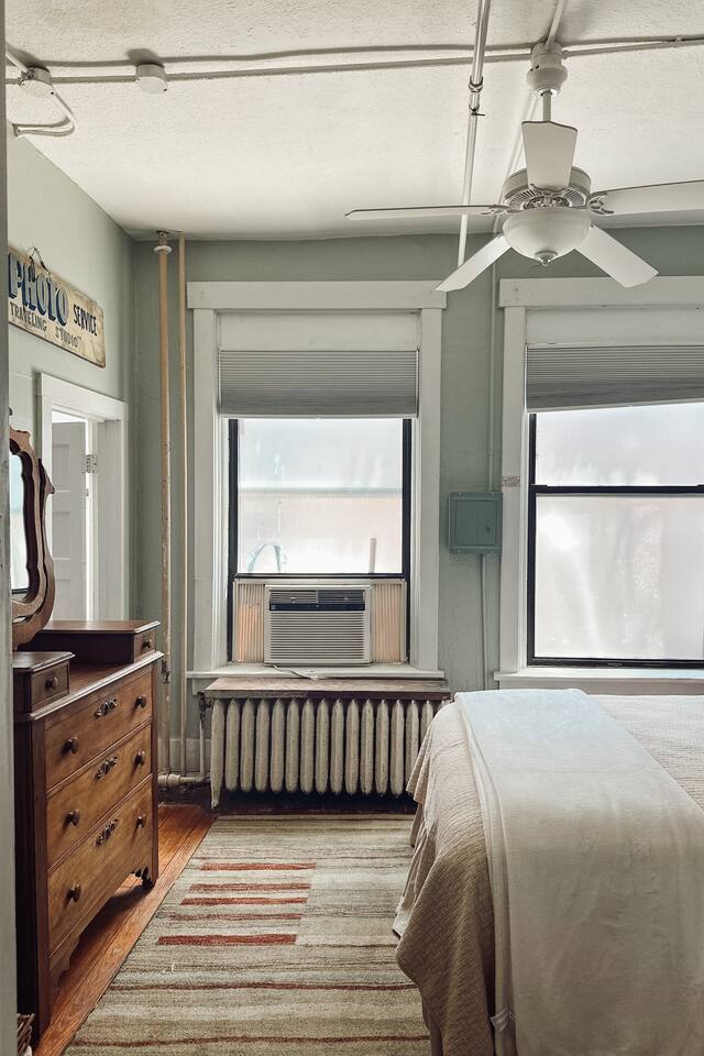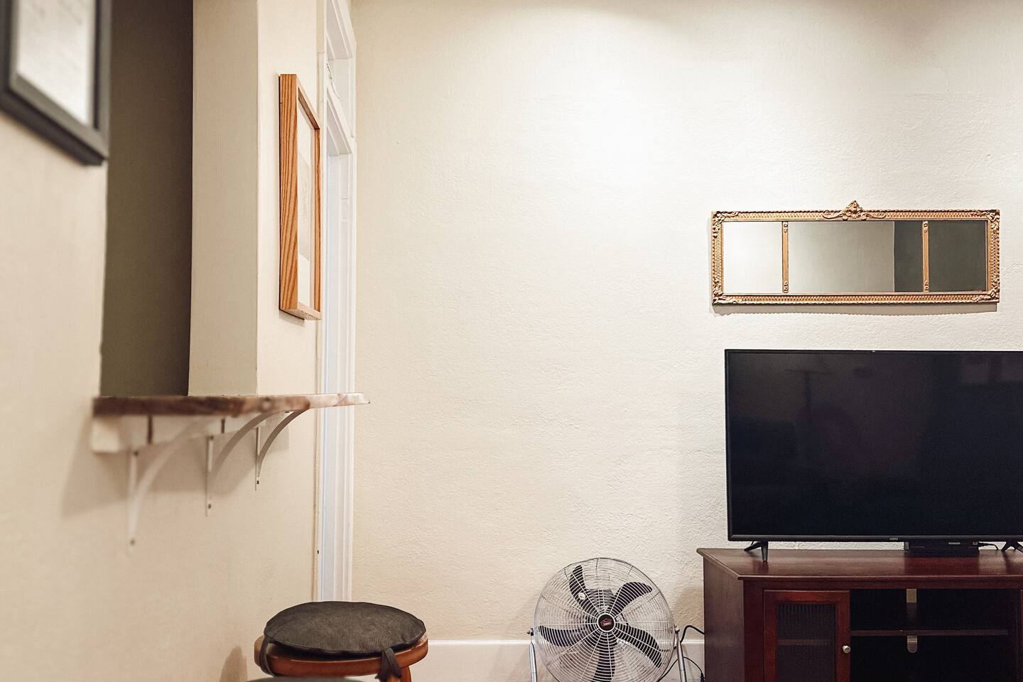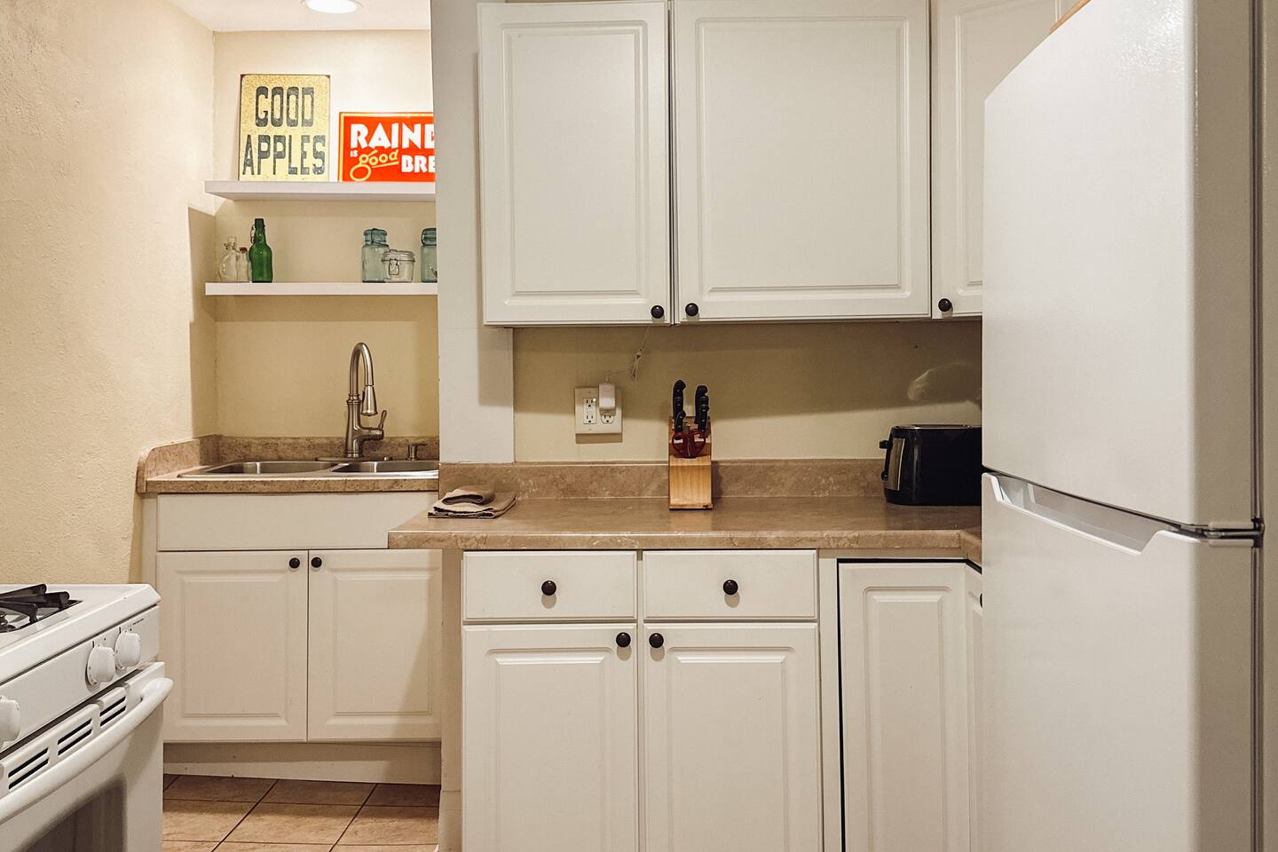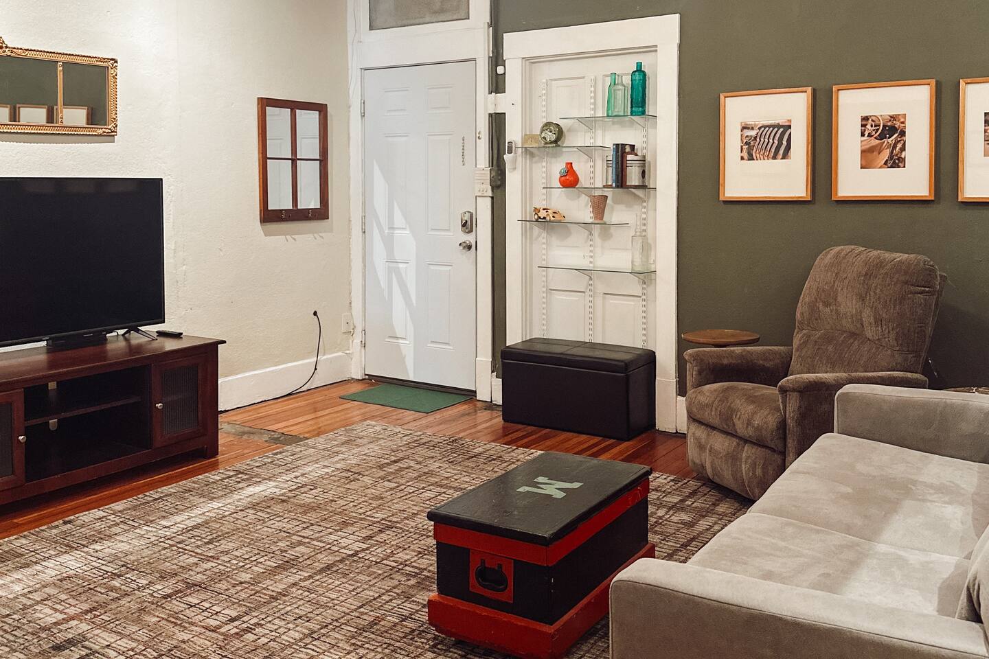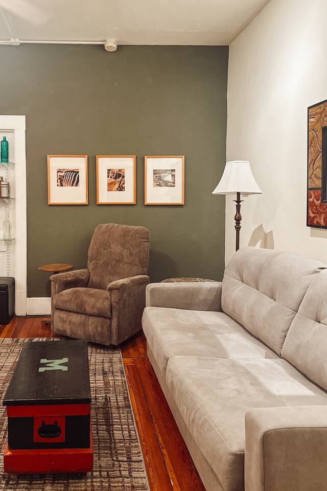 The Den is a 2nd story apartment in downtown Champaign located above the Hounds Rest pub. Please note that guests will need to be able to manage a flight of stairs to access this suite. This suite features 1 bedroom, 1 bathroom, a full kitchen, and a welcoming living room, totaling approximately 500 sq. ft.
